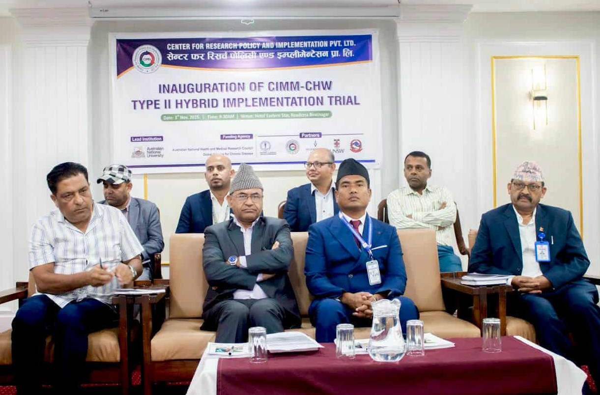विराटनगर । सेन्टर फर रिसर्च, पोलिसी एन्ड इम्प्लिमेन्टेसन प्रा.लि.को आयोजनामा र कोशी प्रदेश स्वास्थ्य मन्त्रालयको सहकार्यमा “टाइप–२ इम्प्लिमेन्टेसन ट्रायल” शीर्षकको बहु–दीर्घकालीन रोग अध्ययन सुरु गरिएको छ। औपचारिक शुभारम्भ सोमबार विराटनगरस्थित होटल इस्टर्न स्टारमा सम्पन्न भयो।