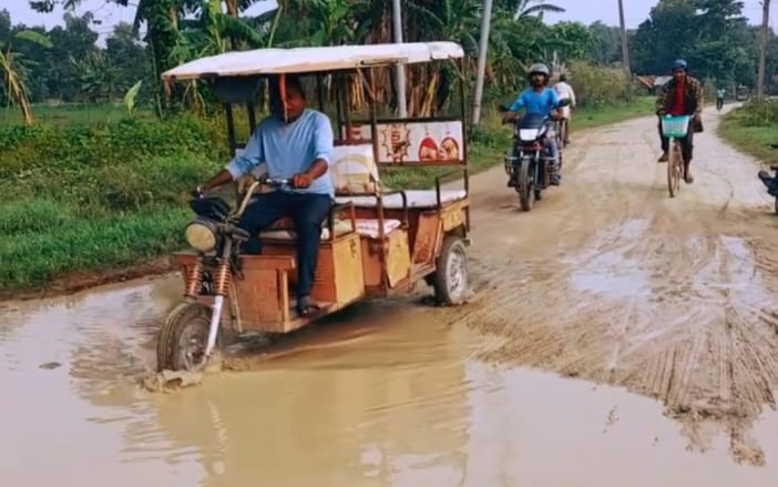 ईनरुवा । सुनसरीको सदरमुकामसँग जोडिने ईनरुवा नगरपालिका–४ गणेशपुरको मुख्य सडक अविरल वर्षाका कारण पोखरीजस्तो बनेको छ। पानी थामिए पनि सडकमा हिलो र पानीको जमिन नहट्दा स्थानीय बासिन्दा र सवारी चालकहरूलाई आवतजावतमा ठूलो सास्ती भोग्नुपरेको छ।